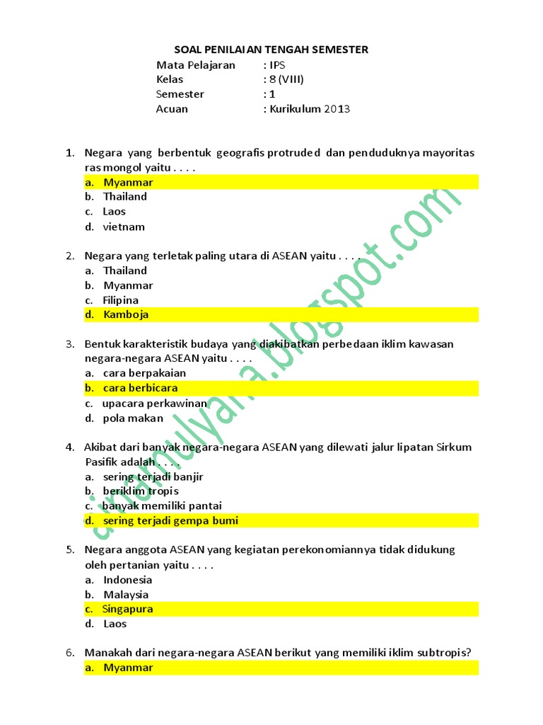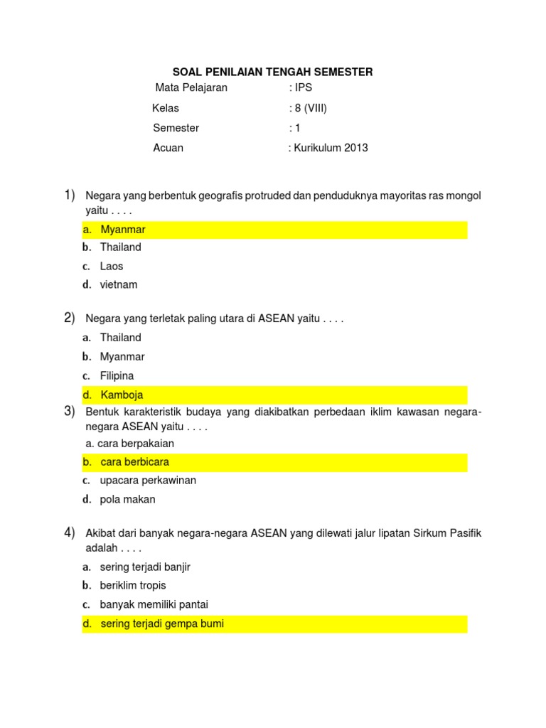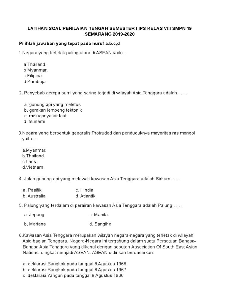 Latihan Soal Penilaian Tengah Semester i Ips Kelas Viii Smpn 19 Semarang 2019