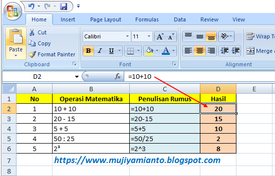 Operator Matematika dan Rumus Excel | Ilmupadi.net