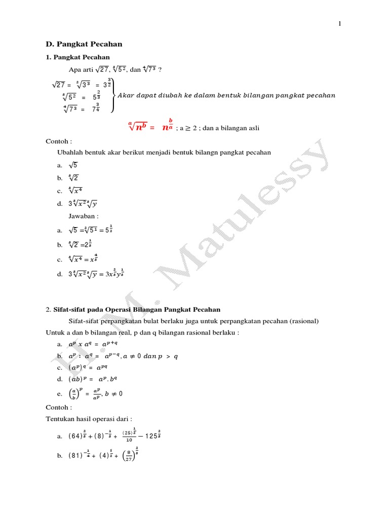Pangkat Pecahan Dan Bentuk Akar
