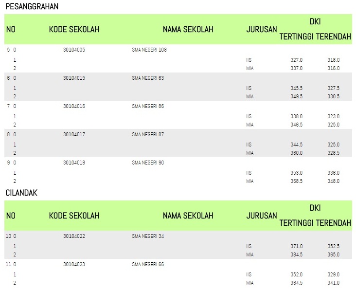 PPDB DKI SMA: PASSING GRADE TAHAP 2 JAKARTA SELATAN