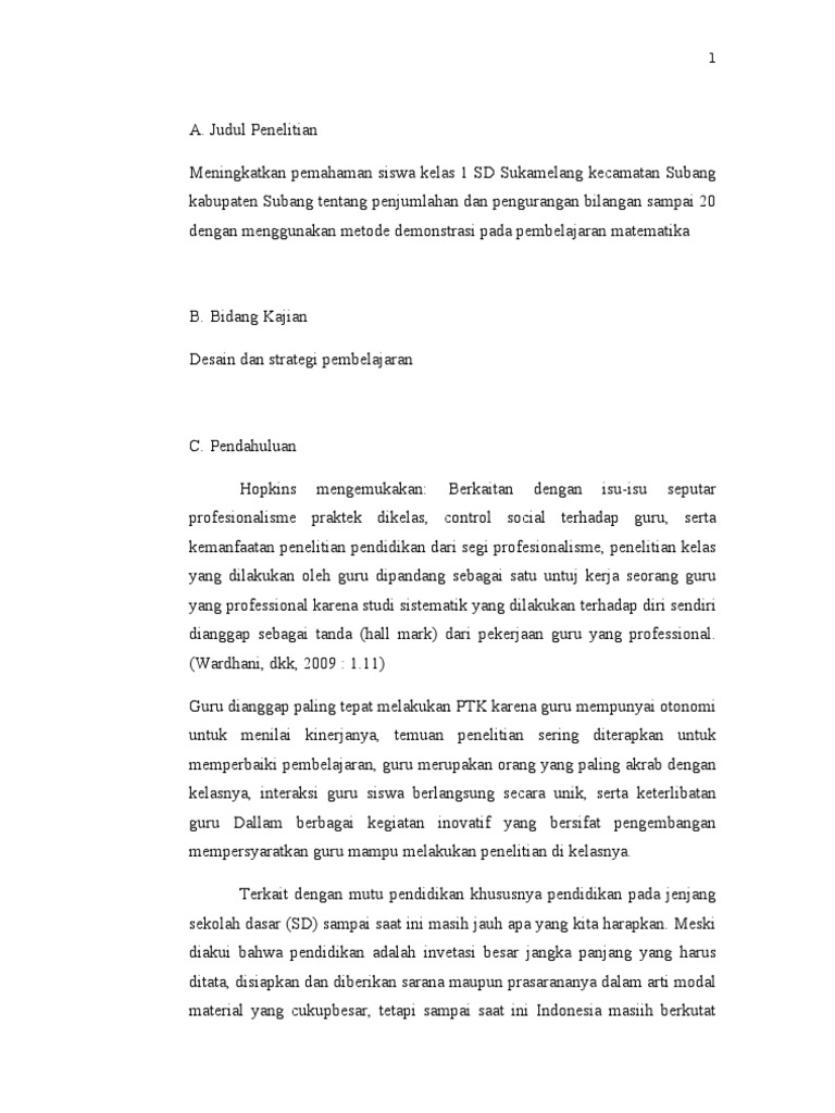 Proposal Ptk Matematika Kelas 1 Sd Sukamelang