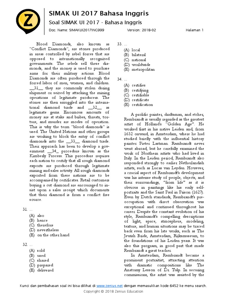 SIMAK UI 2017 Bahasa Inggris - Zenius .Kunci dan pembahasan soal …