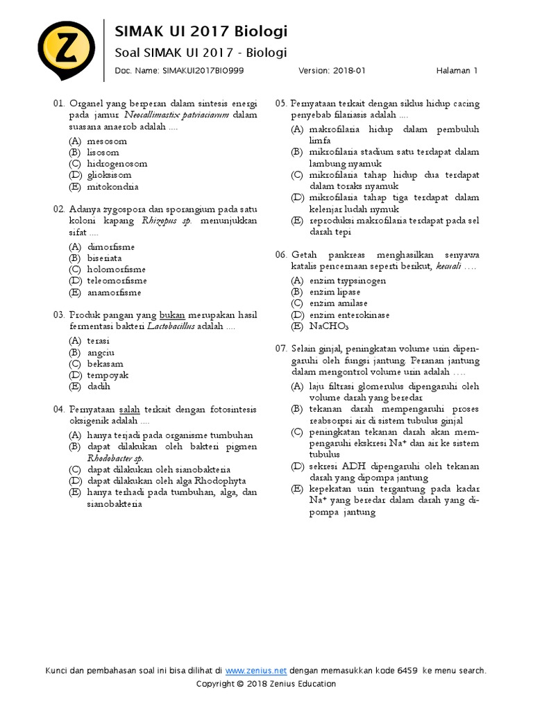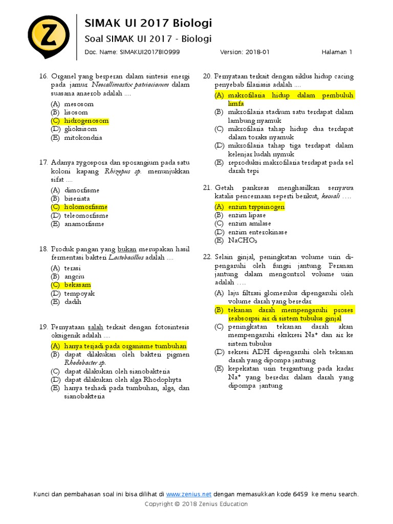 PEMBAHASAN SOAL SIMAK UI 2017 BIOLOGI KODE SOAL 341 - myrightspot.com