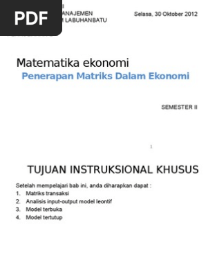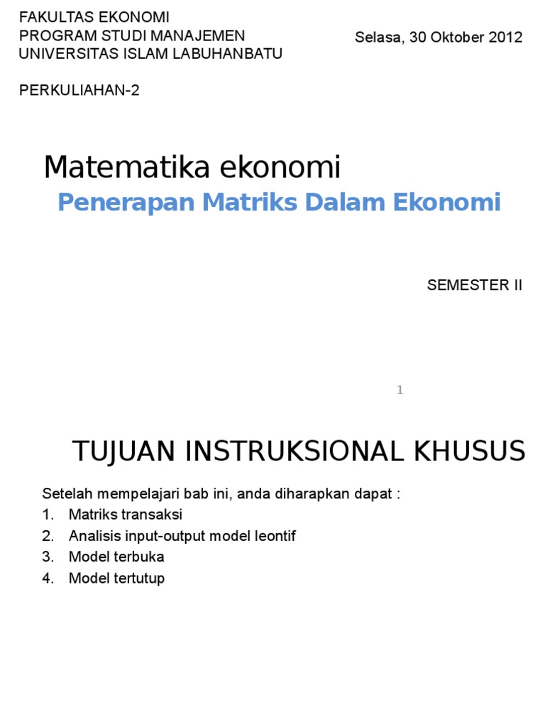 Matematika Ekonomi 12 Matriks Dan Aplikasi Ekonomi