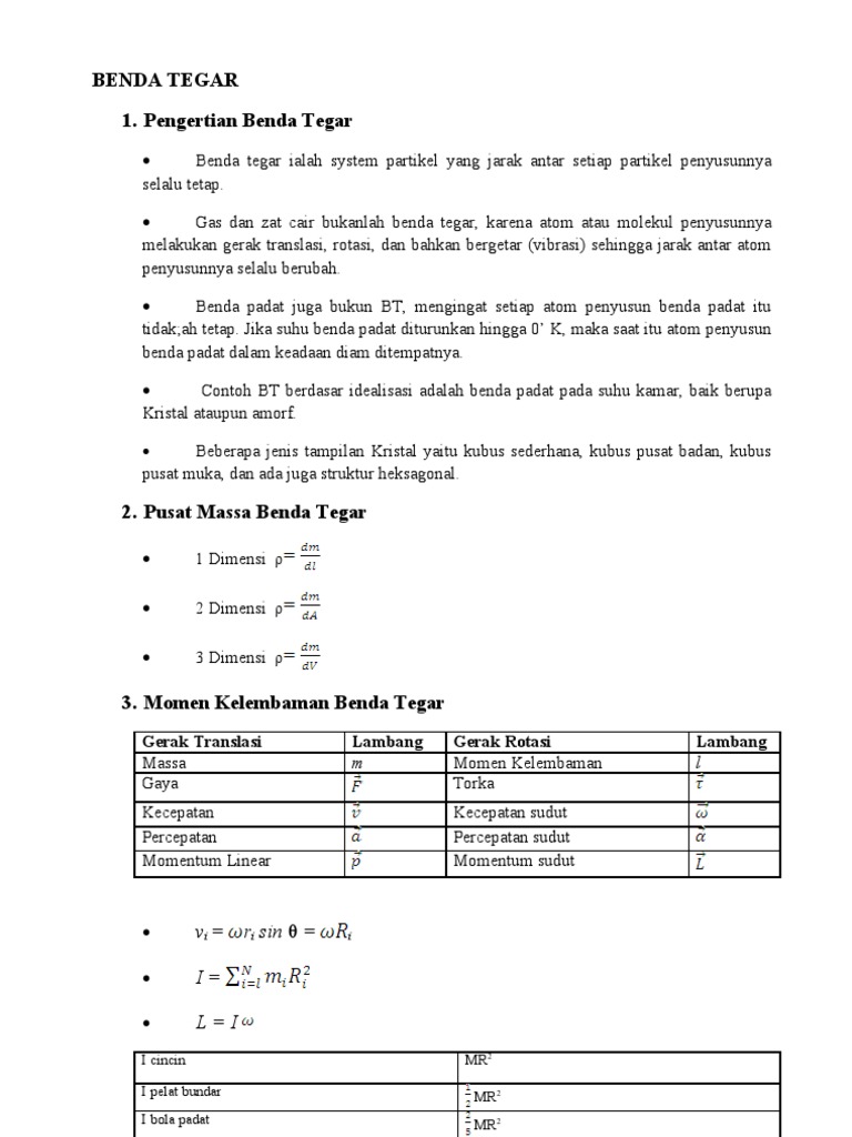 PDF) Ringkasan Kuliah Fisika Dasar: Benda tegar