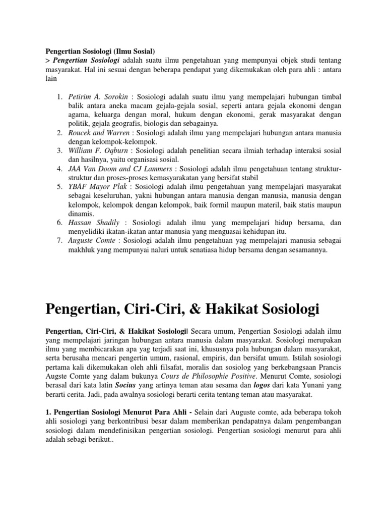 Pengertian Sosiologi Menurut Para Ahli | sosiologis.com