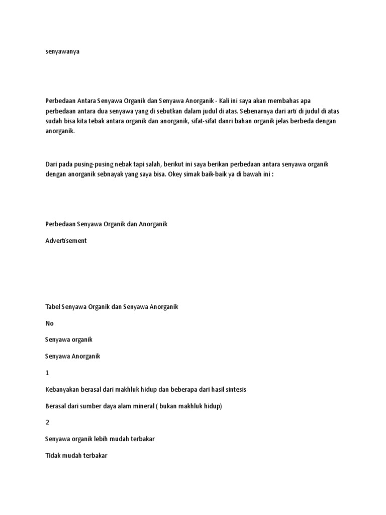 Jelaskan Perbedaan Dari Senyawa Organik Dan Senyawa Anorganik …