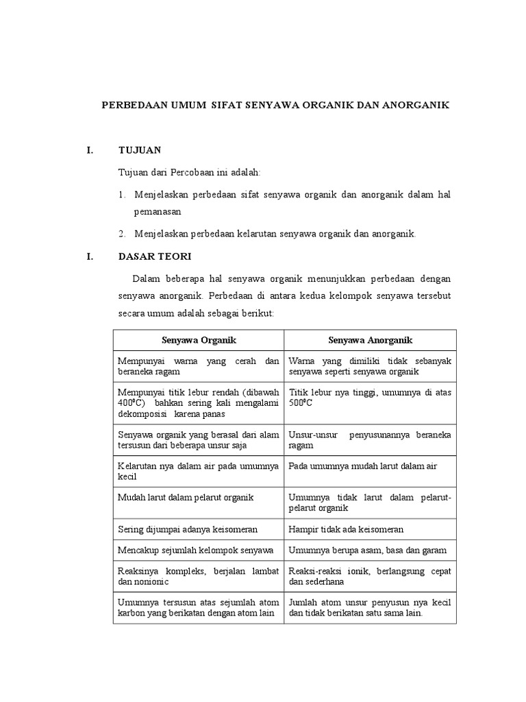 DOC) LAPORAN KIMIA ORGANIK I PERBEDAAN SENYAWAC ORGANIK DAN …