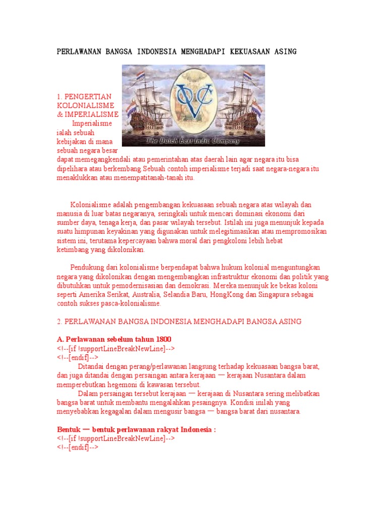 Perlawanan Bangsa Indonesia terhadap Kolonialisme dan Imperialisme …