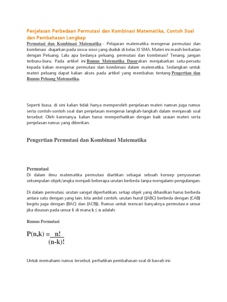 Soal Dan Pembahasan Kombinasi Dan Permutasi Peluang