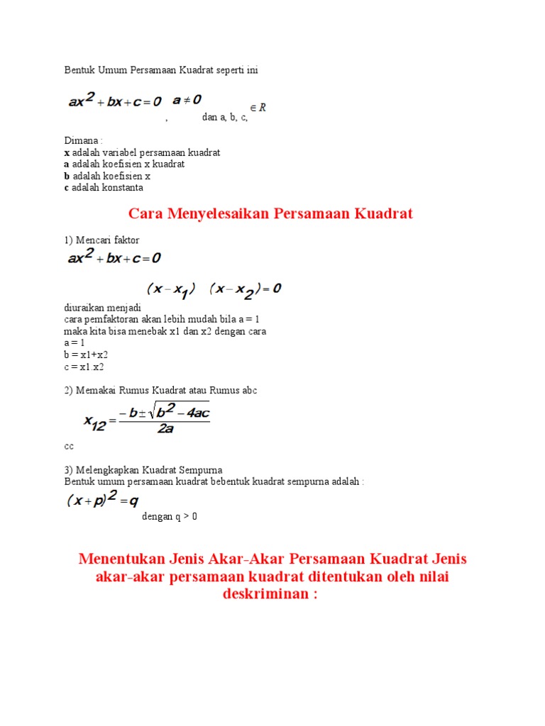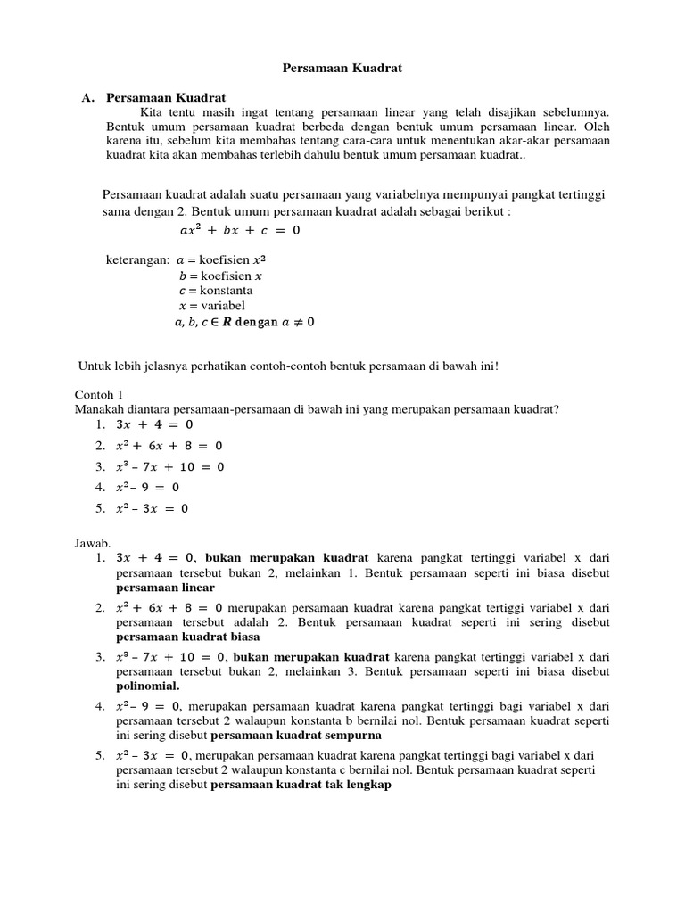 Persamaan Kuadrat dan Penyelesaiannya - Portal-Ilmu.com | Read …