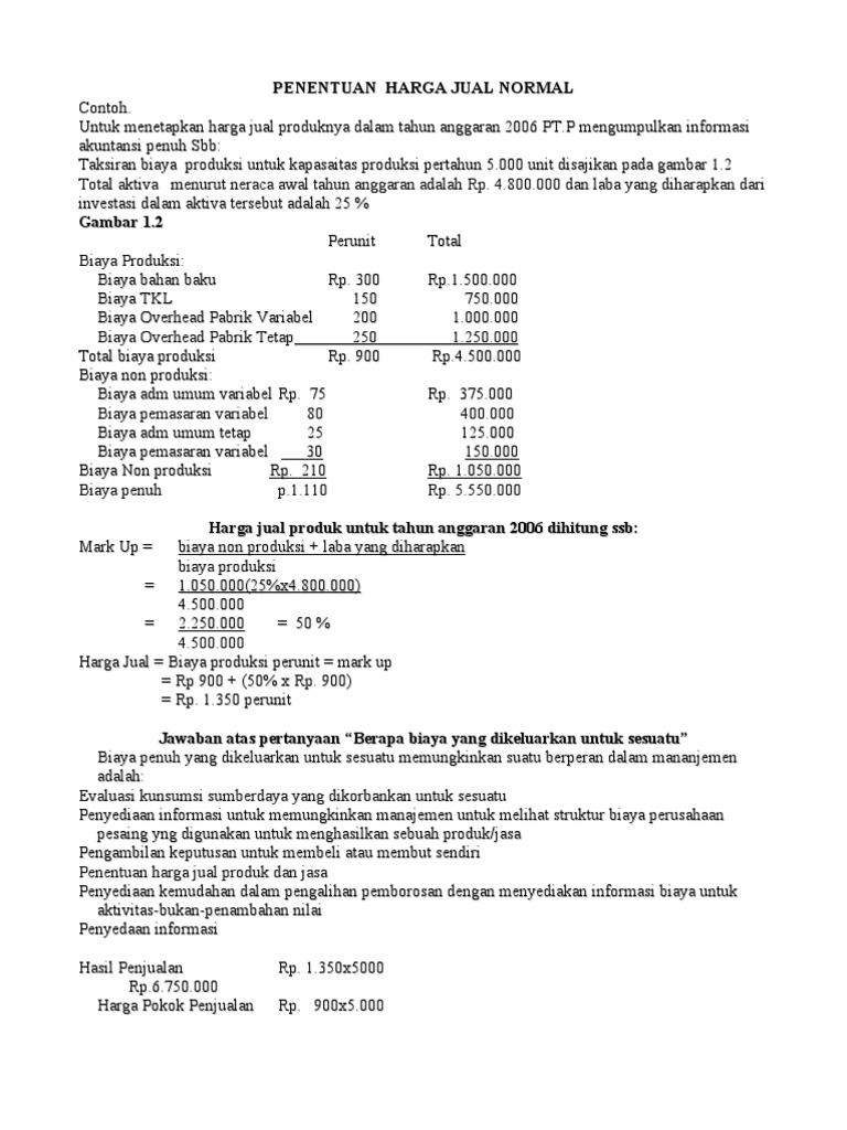 analisis biaya pokok produksi dengan pedoman penentuan harga jual pro…