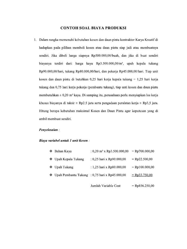 PDF) SOAL BIAYA PRODUKSI | Virginia Sumendap - Academia.edu