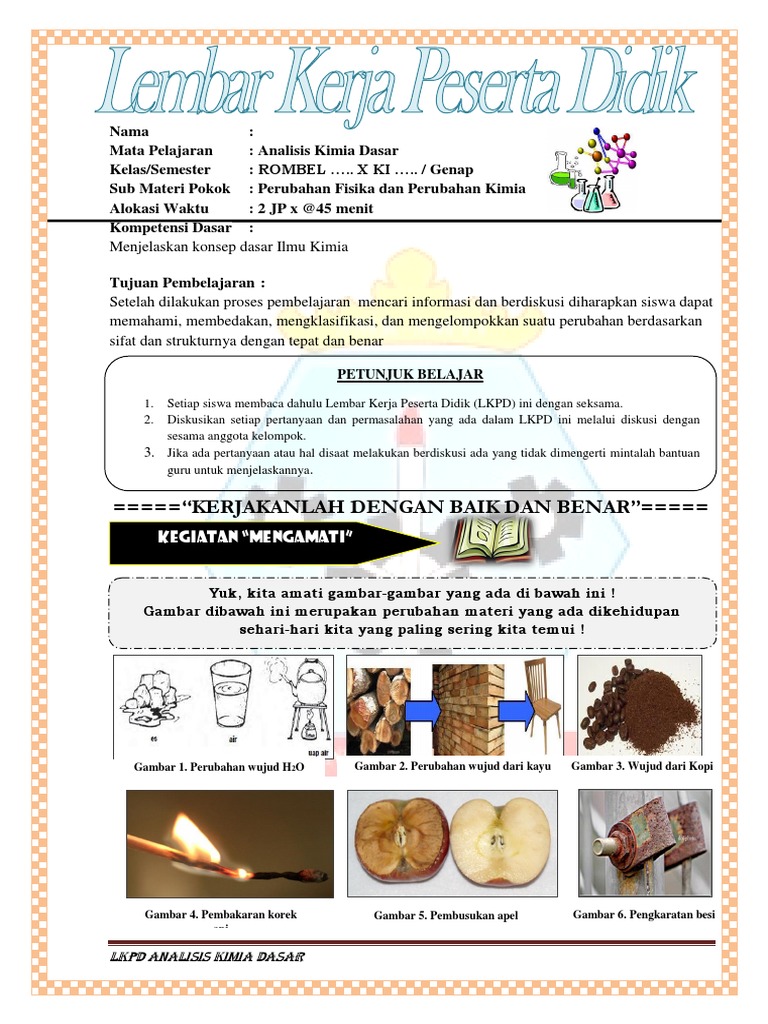 Lembar Kegiatan Siswa Pengamatan Perubahan Fisika dan Perubahan Kimia