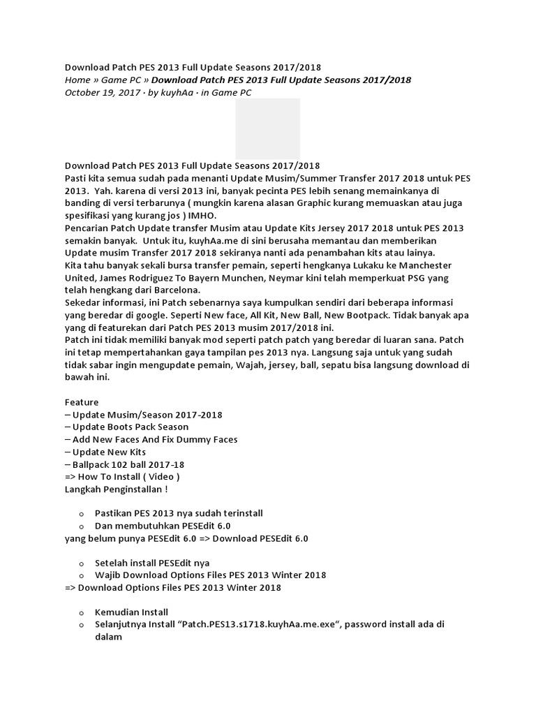 Download Patch PES 2013 Full Update Seasons 2017/2018 - Kuyhaa - Free Download Software Full Version