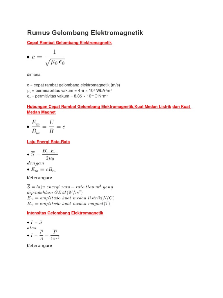 KUMPULAN RUMUS DAN RANGKUMAN GELOMBANG ELEKTROMAGNETIK