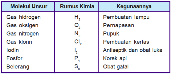 Contoh Molekul Unsur Dan Lambangnya