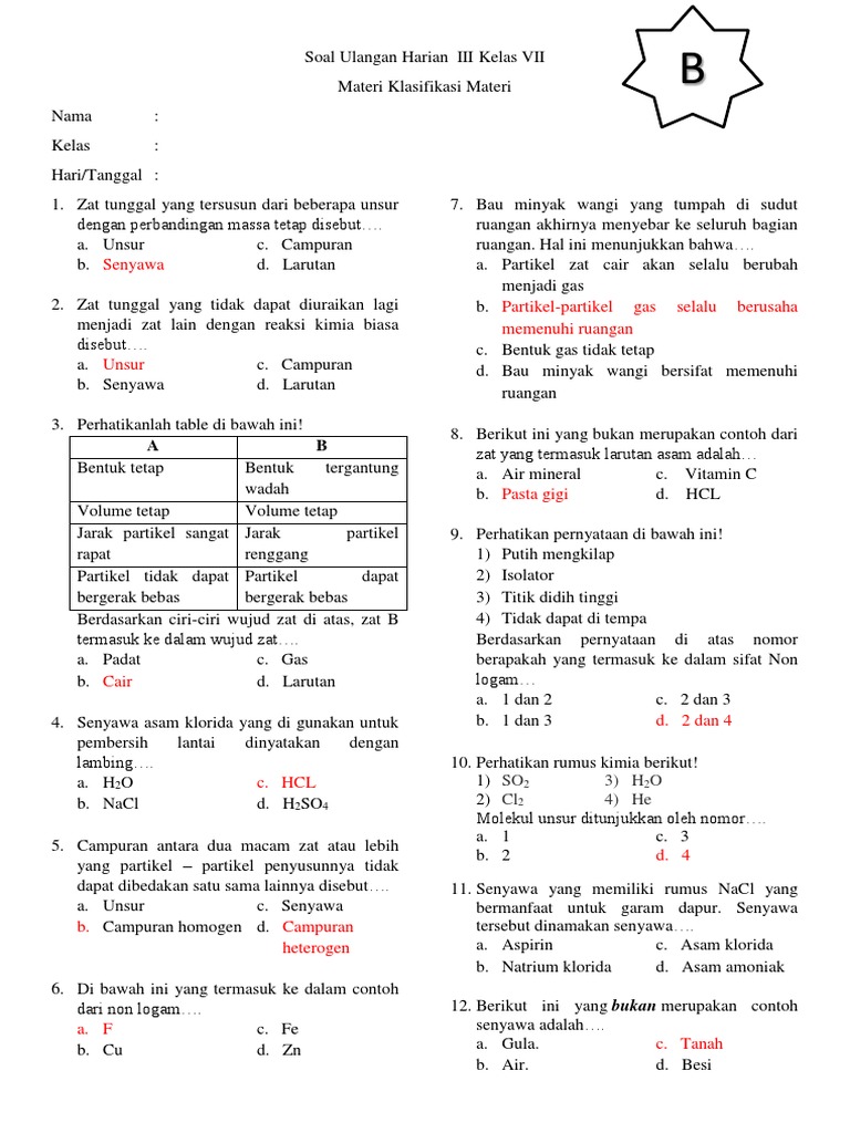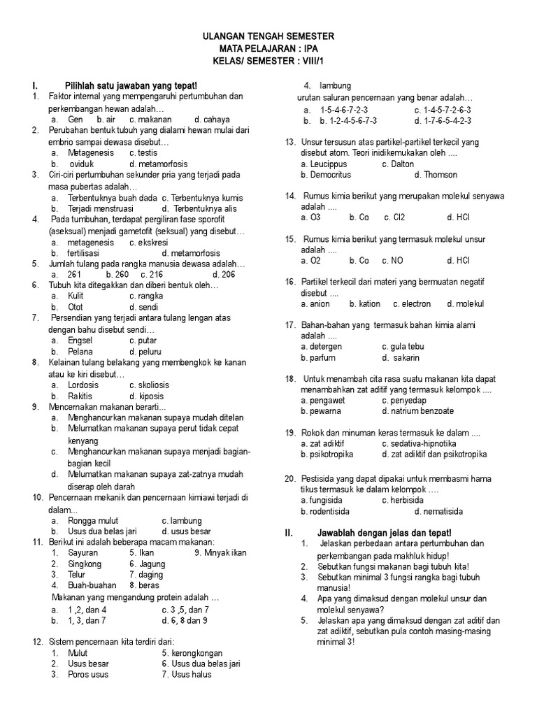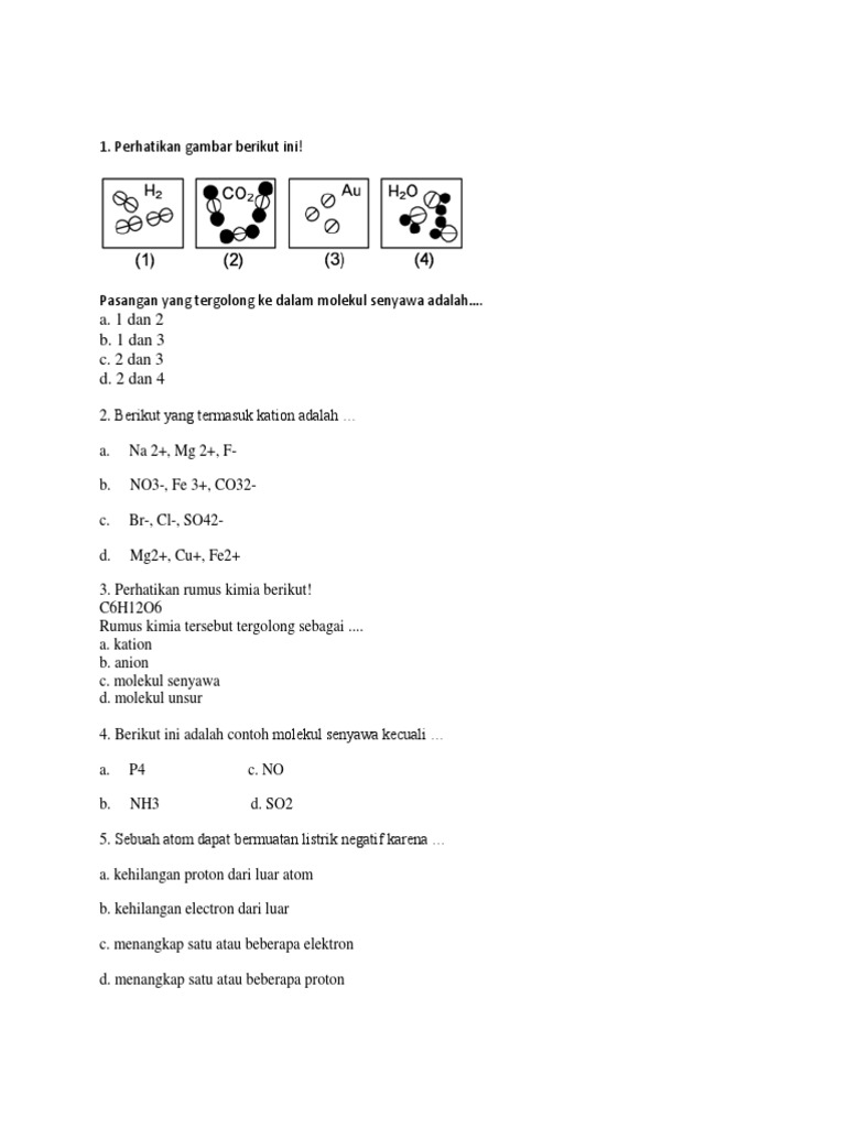 Soal Latihan Pelajaran IPA Kelas 8 SMP - Molekul Unsur Dan Molekul …