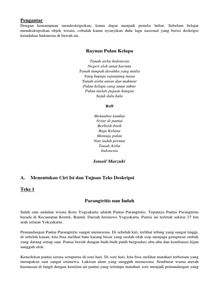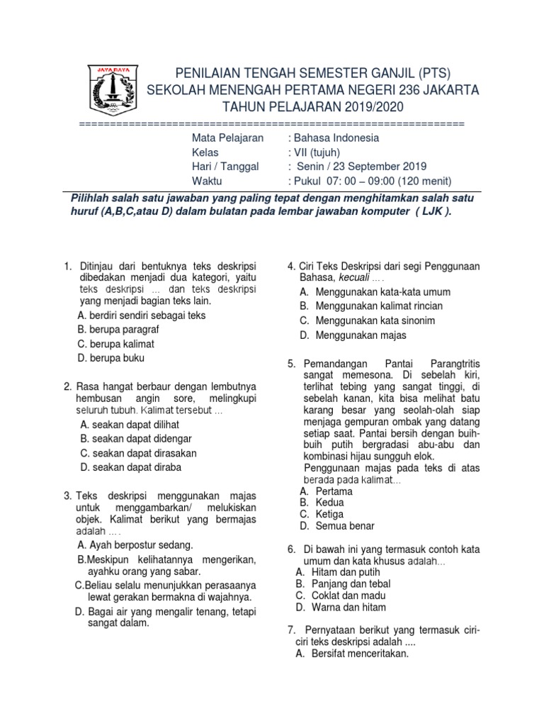 Contoh Soal Teks Deskripsi (Kelas VII) - PELAJARAN BAHASA …