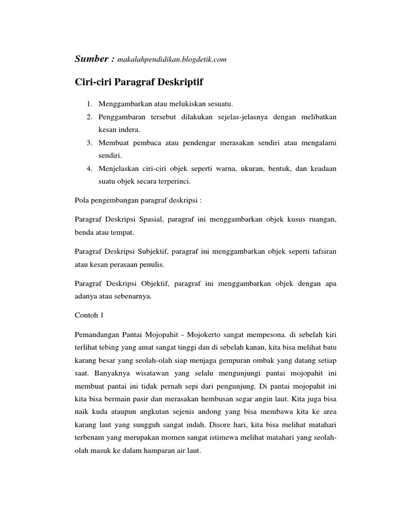 Ciri-Ciri Paragraf Deskriptif.