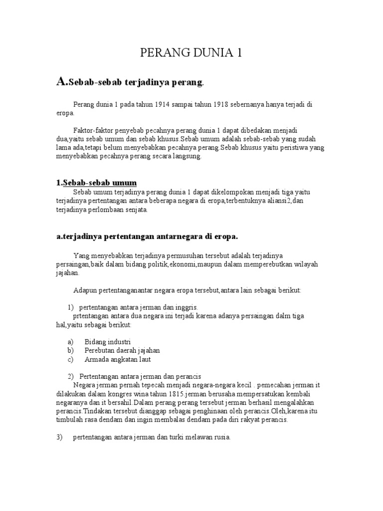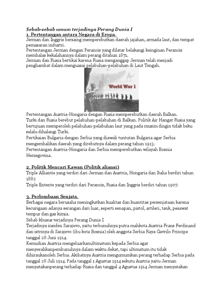 DOC) Perang Dunia I dan II PERANG DUNIA I ( 1914-1918) Sebab …