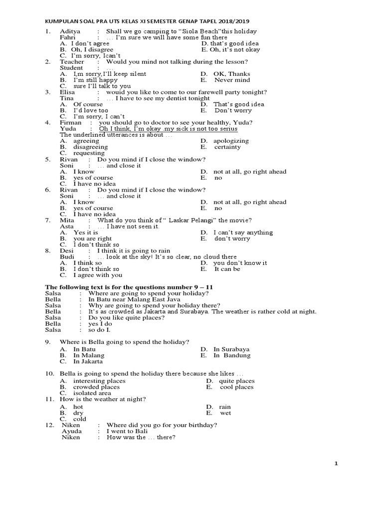 Download Soal UTS Bahasa Inggris SMA Kelas 11 Semester 1 Terbaru …