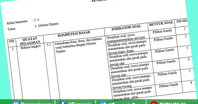 Kisi-Kisi Soal UH / PH B Inggris Kelas 5 Semester 1 Revisi - GURU MAJU