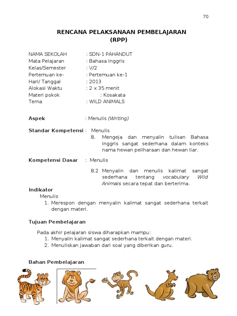 RPP my favourite animals - Kurikulum 2013 Bahasa Inggris SMP/MTs