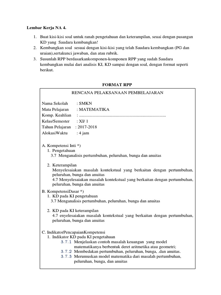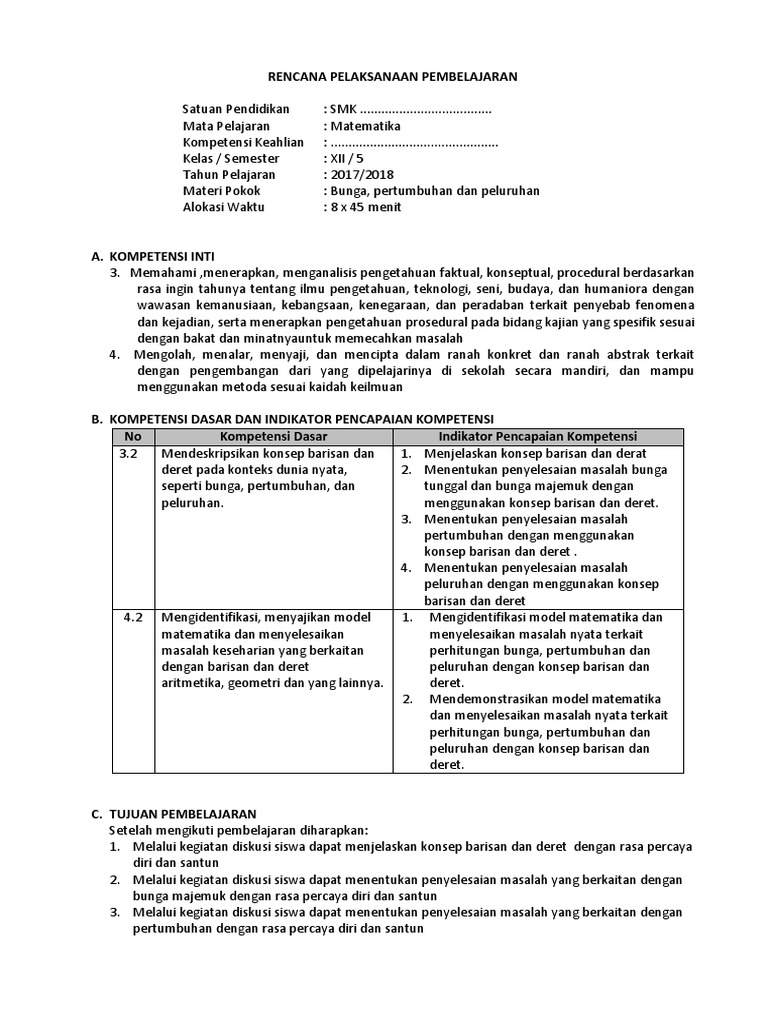 Rpp 1 Lembar Kelas 12 Semester 2 Matematika Anuitas โ IlmuSosial.id