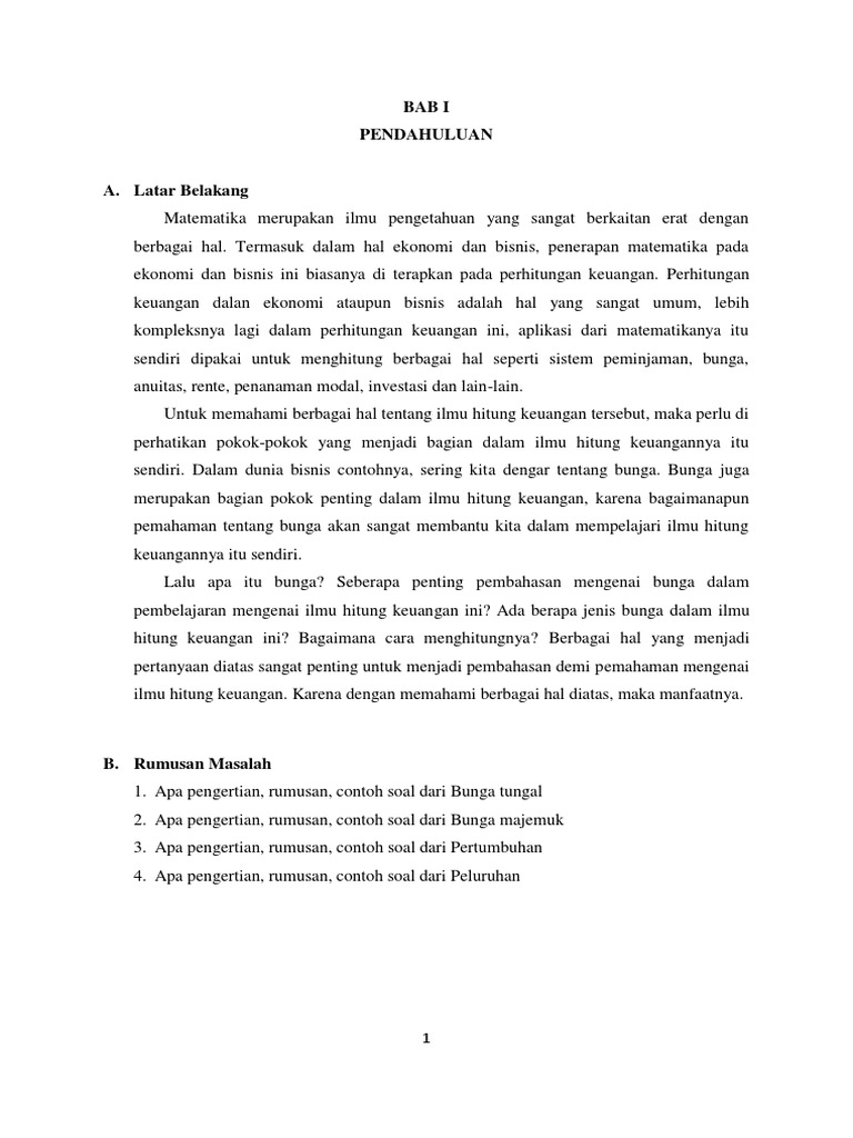 MATEMATIKA BUNGA: PERTUMBUHAN DAN PELURUHAN CONTOH SOAL. A. BUNGA TUNGGAL a. Konsep Bunga Tunggal. b. Rumus Bunga Tunggal - PDF Free Download