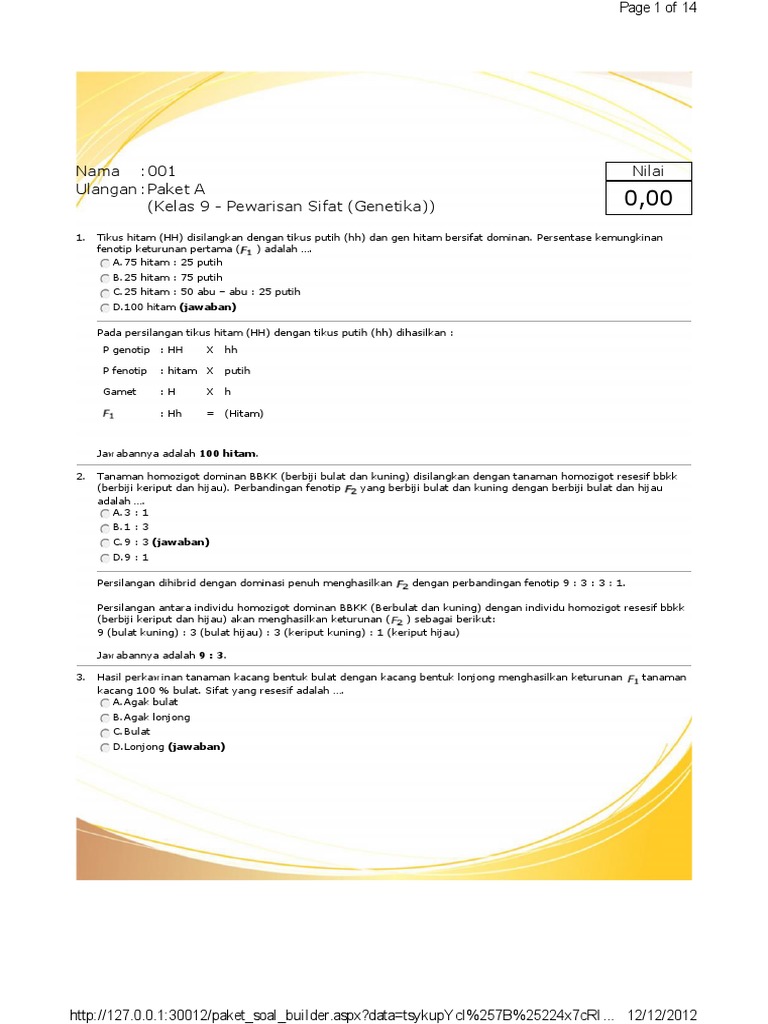 Contoh Soal Pewarisan Sifat Kelas 9 Dan Jawabannya - Contoh Soal Terbaru