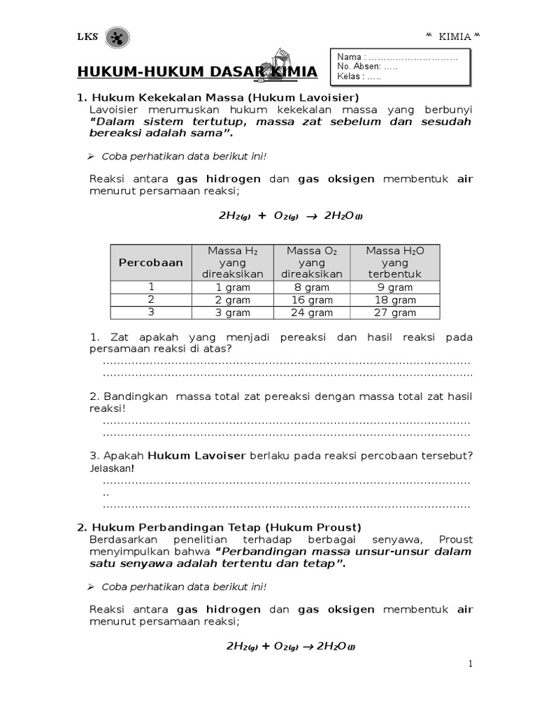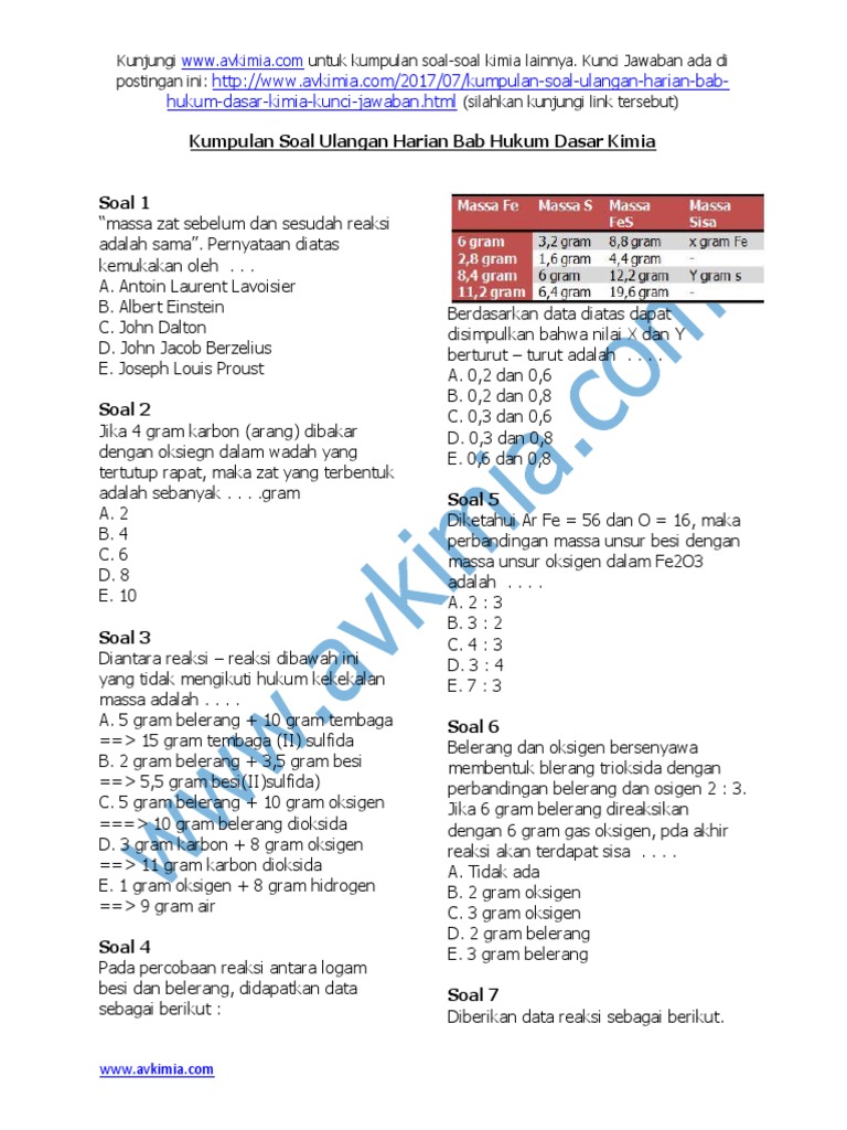 Soal Dan Jawaban Hukum Dasar Kimia - Guru Paud