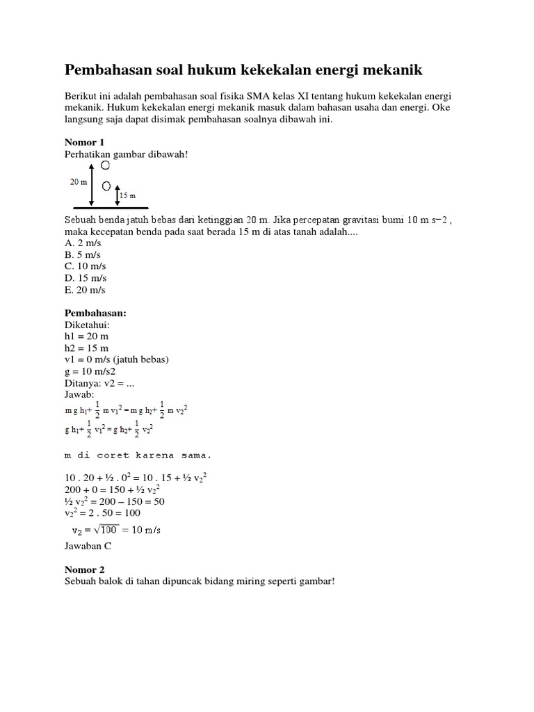 Contoh soal hukum kekekalan energi mekanik & pembahasan + jawaban …
