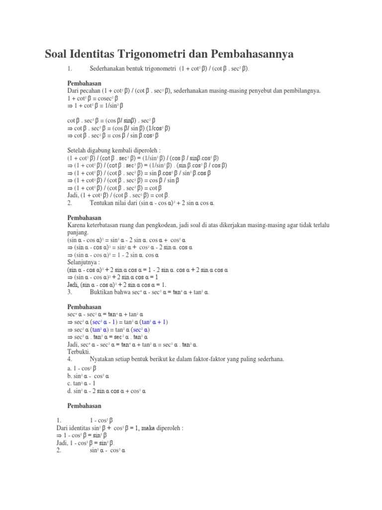 Soal Dan Pembahasan Identitas Trigonometri - [PDF Document]