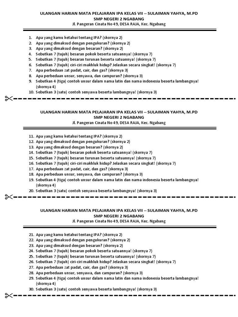 DOC) LATIHAN SOAL IPA KELAS VII SMP | Maya Ektryana - Academia.edu