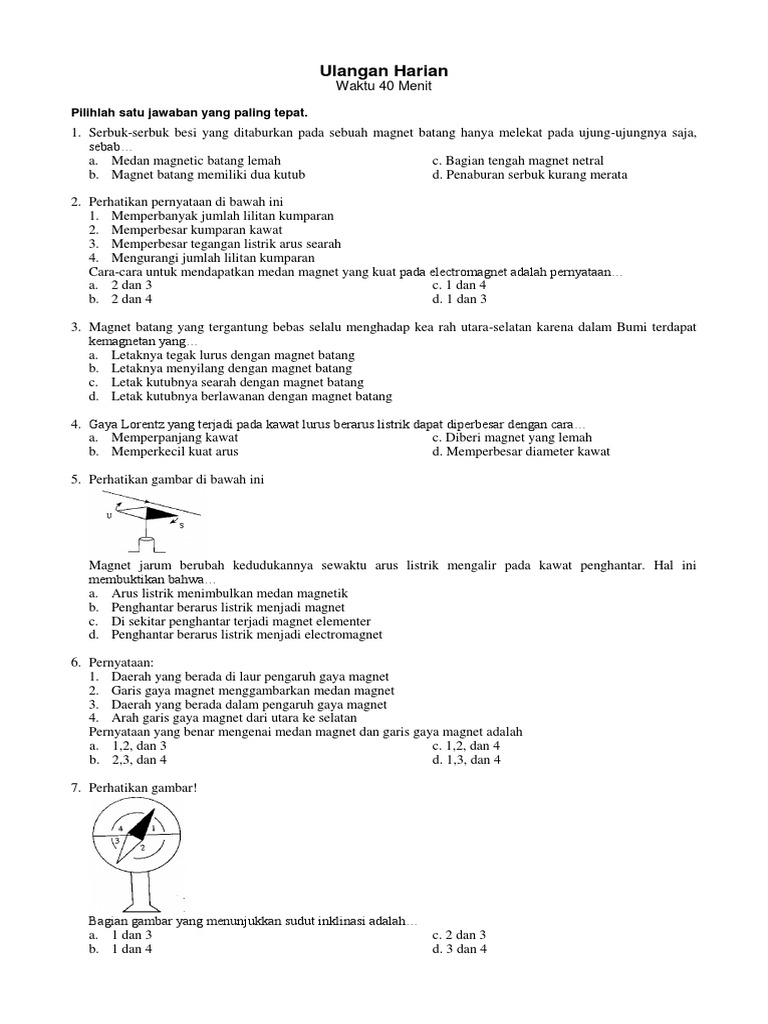 Soal Latihan Kemagnetan Kelas 9 Pilihan Ganda Dan Esay