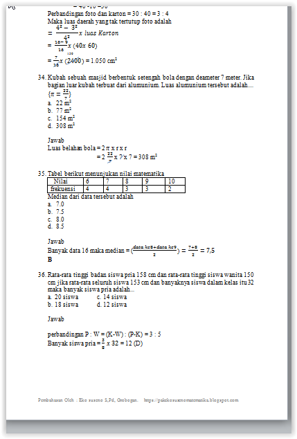 Soal UN Matematika SMP 2017 dan Pembahasan 31-40 ~ Sains Seru