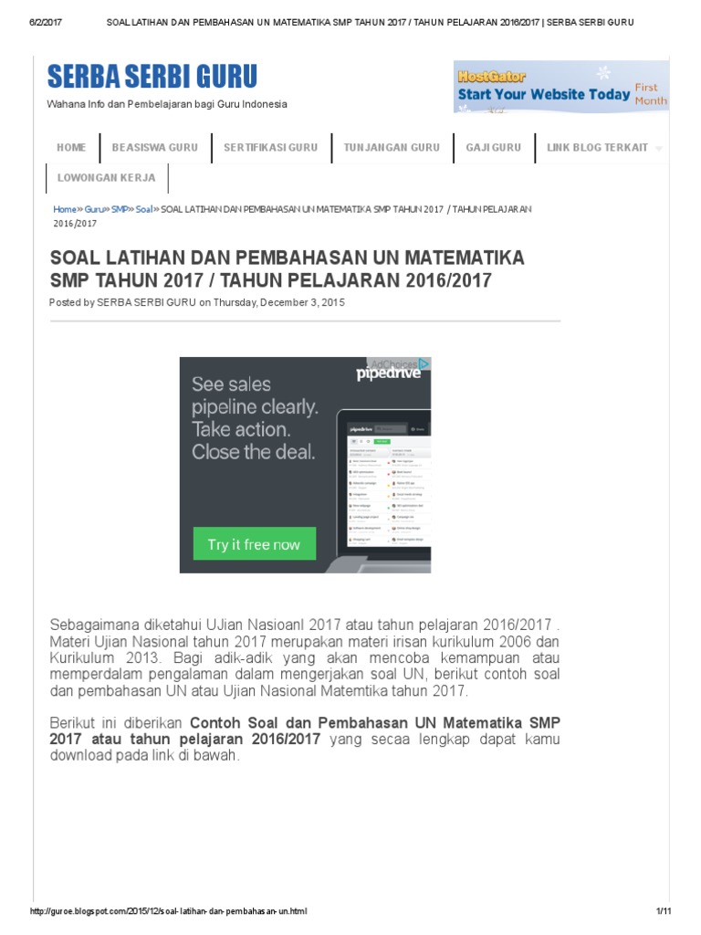 PDF) Pembahasan UN Matematika SMP 2017 | Yan Aryana - Academia.edu
