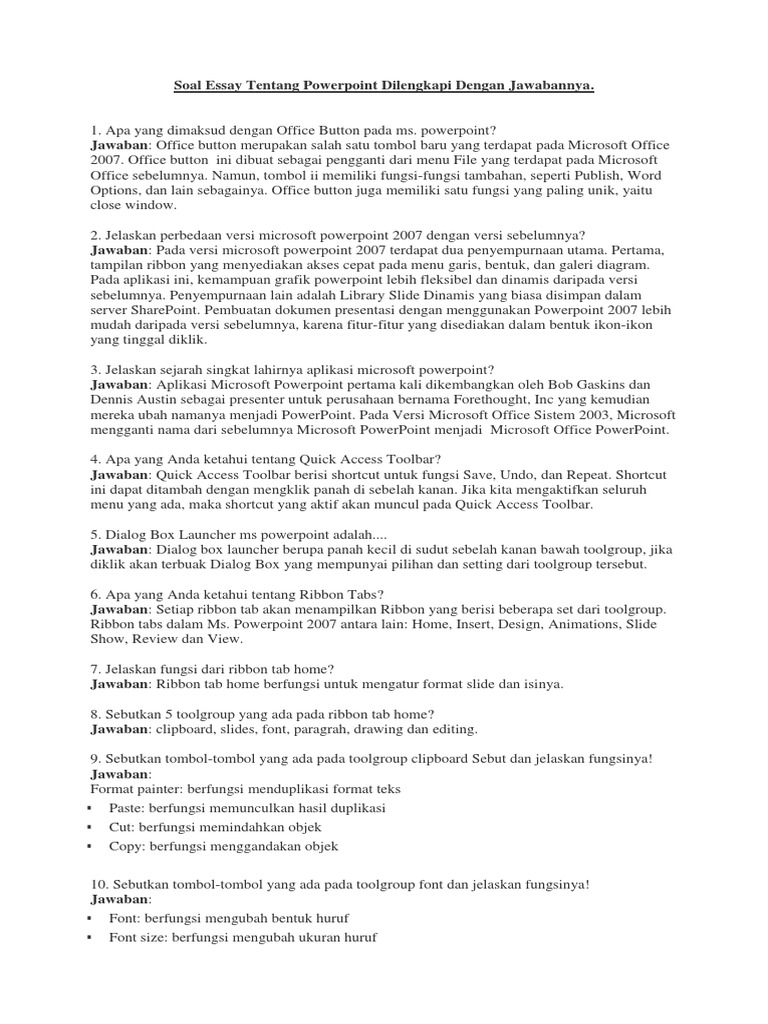 Soal Uraian Essay Power Point 2018 Kelas x Simdig