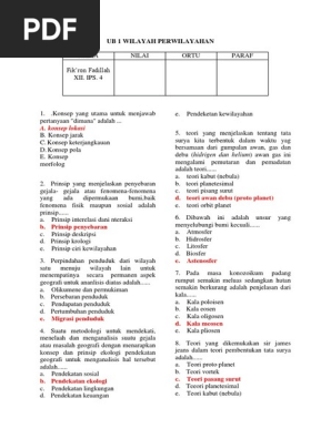 Soal Ulangan Wilayah Dan Perwilayahan - Helmi Kediris