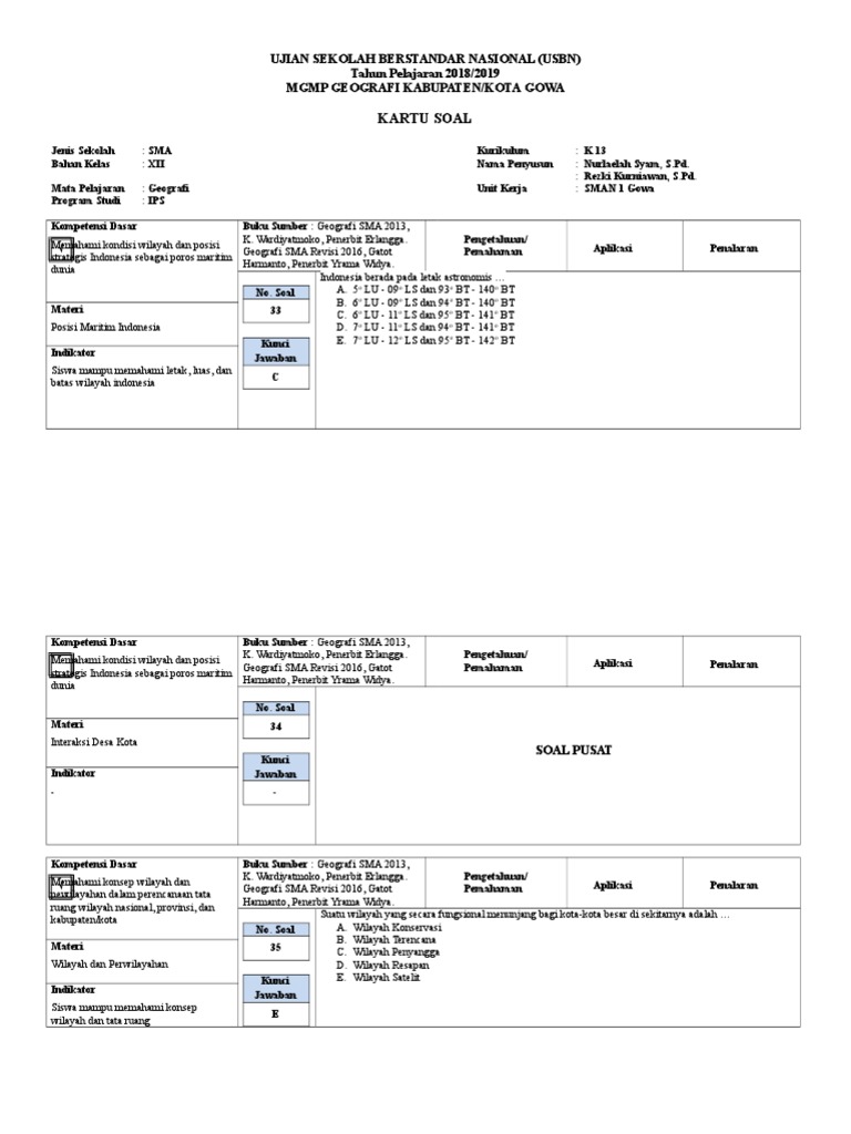 DOC) Soal UN Geografi + KUNCI JAWABAN | siti dewi - Academia.edu