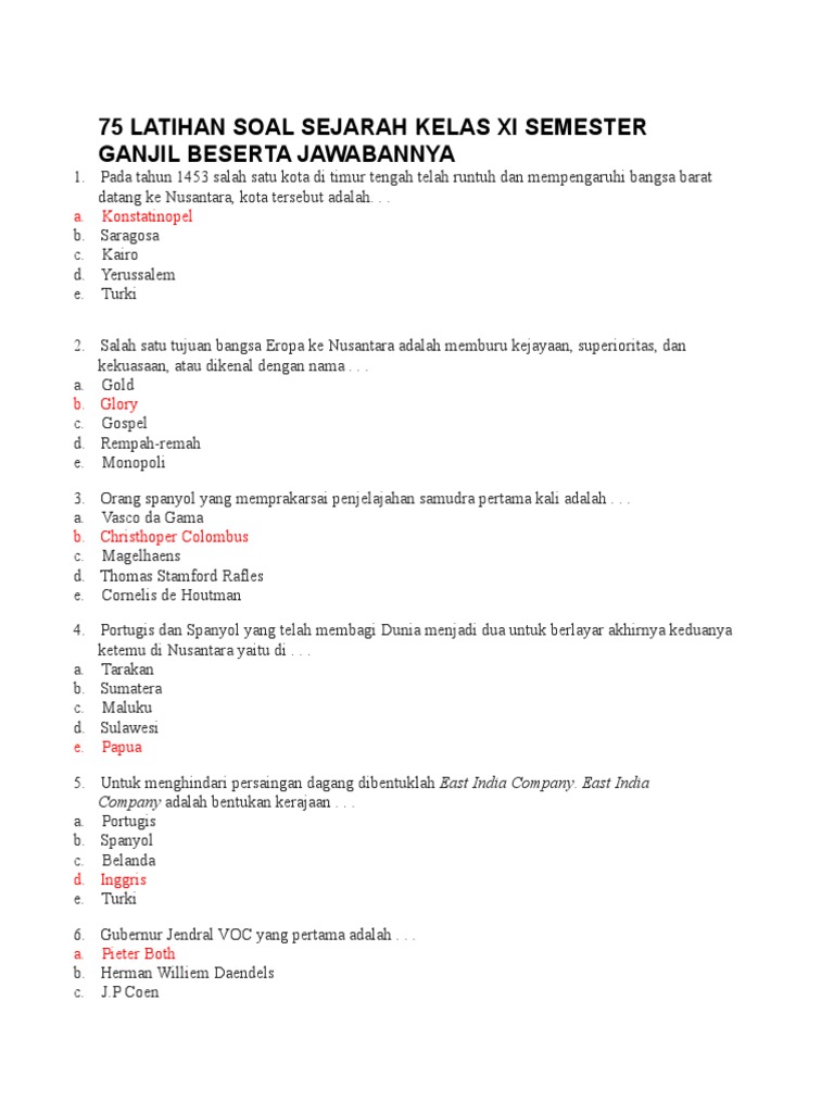 75 Latihan Soal Sejarah Kelas Xi Semester Ganjil Beserta Jawabannya