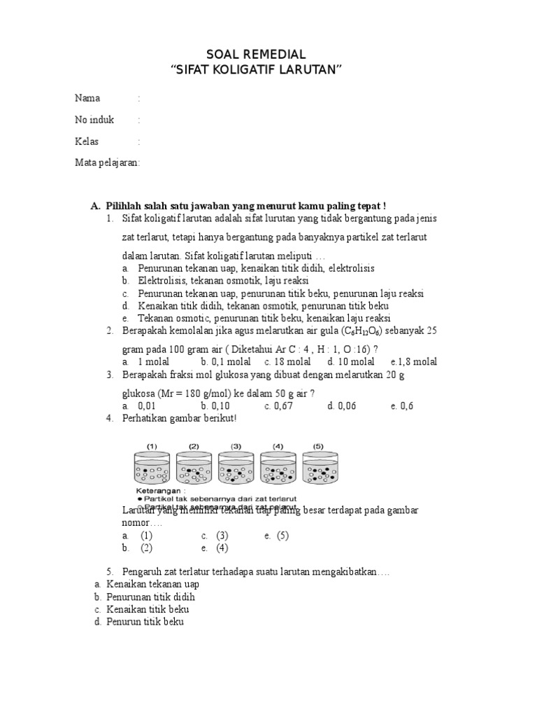 SOAL REMEDIAL SIFAT KOLIGATIF LARUTAN - PDF Free Download