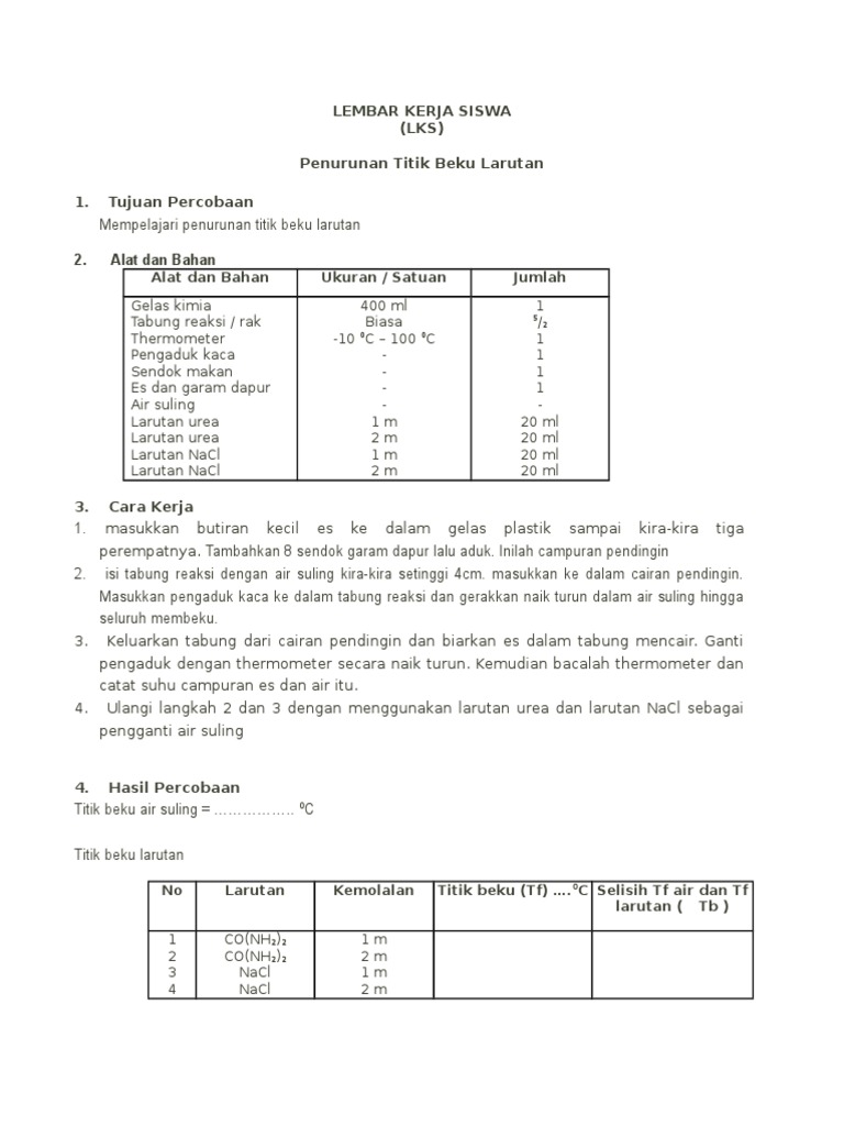 Soal Dan Jawaban Sifat Koligatif Larutan Kimia Kelas Xii …