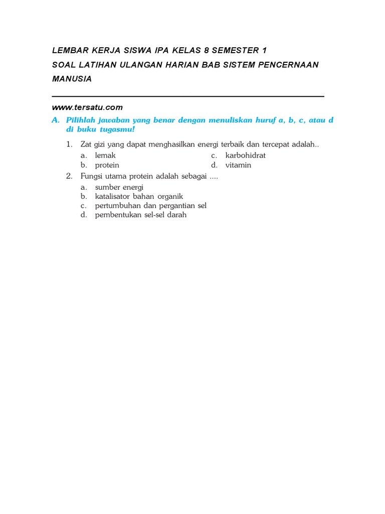 Soal IPA Sistem Pencernaan Makanan Kelas 8 Semester 1.docx - Soal …