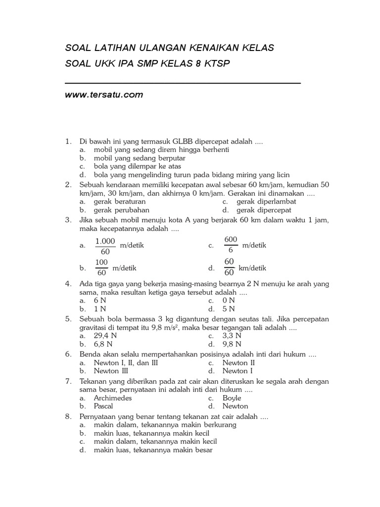 Lengkap - 45+ Contoh Soal UKK IPA Kelas 8 SMP/MTs dan Kunci Jawaban Terbaru - Bospedia