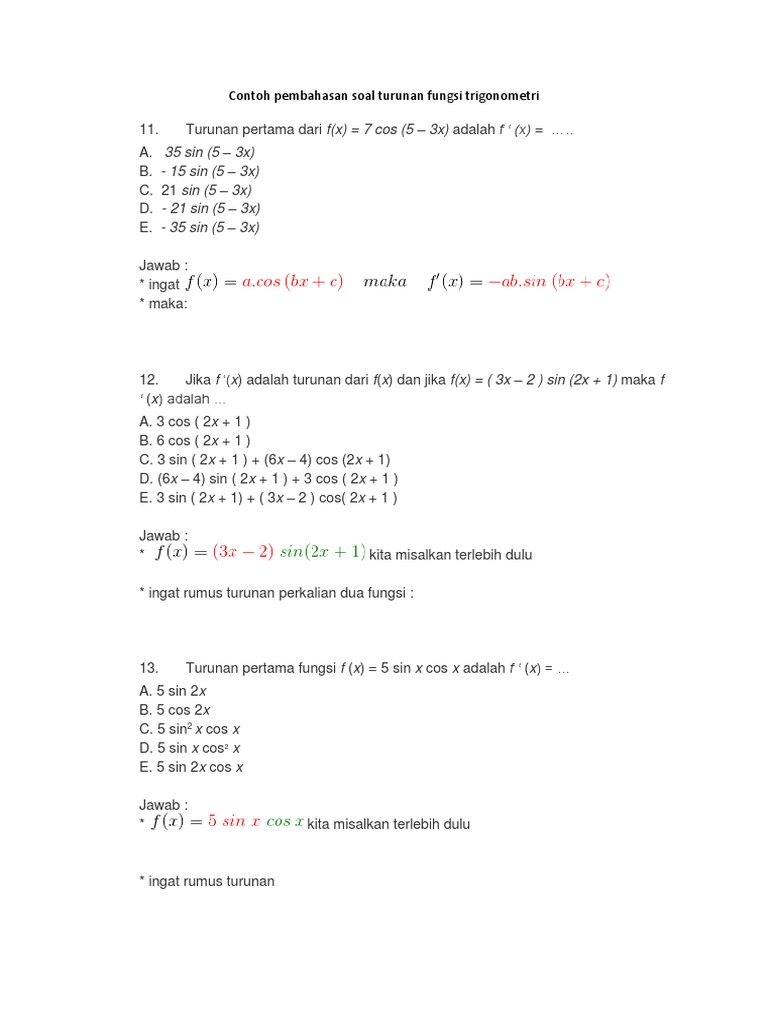 Soal Dan Pembahasan Turunan Fungsi Trigonometri Pdf