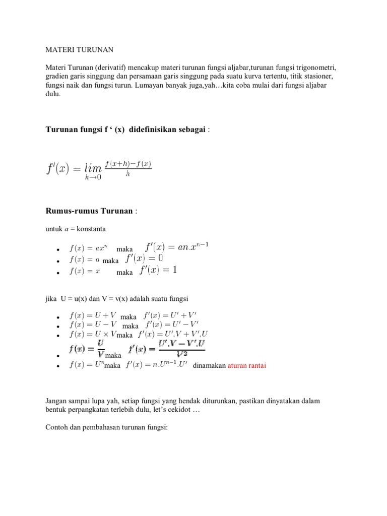 √ Turunan Matematika: Materi, Aljabar, Trigonometri, Aplikasi Turunan