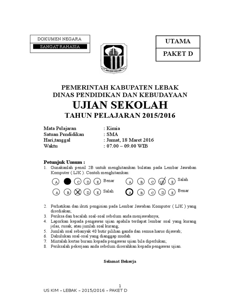 Soal Us Kimia 2015-2016 Paket d
