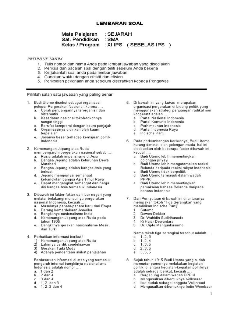 Soal UAS Sejarah Indonesia: Pergerakan Nasional Indonesia Halaman …